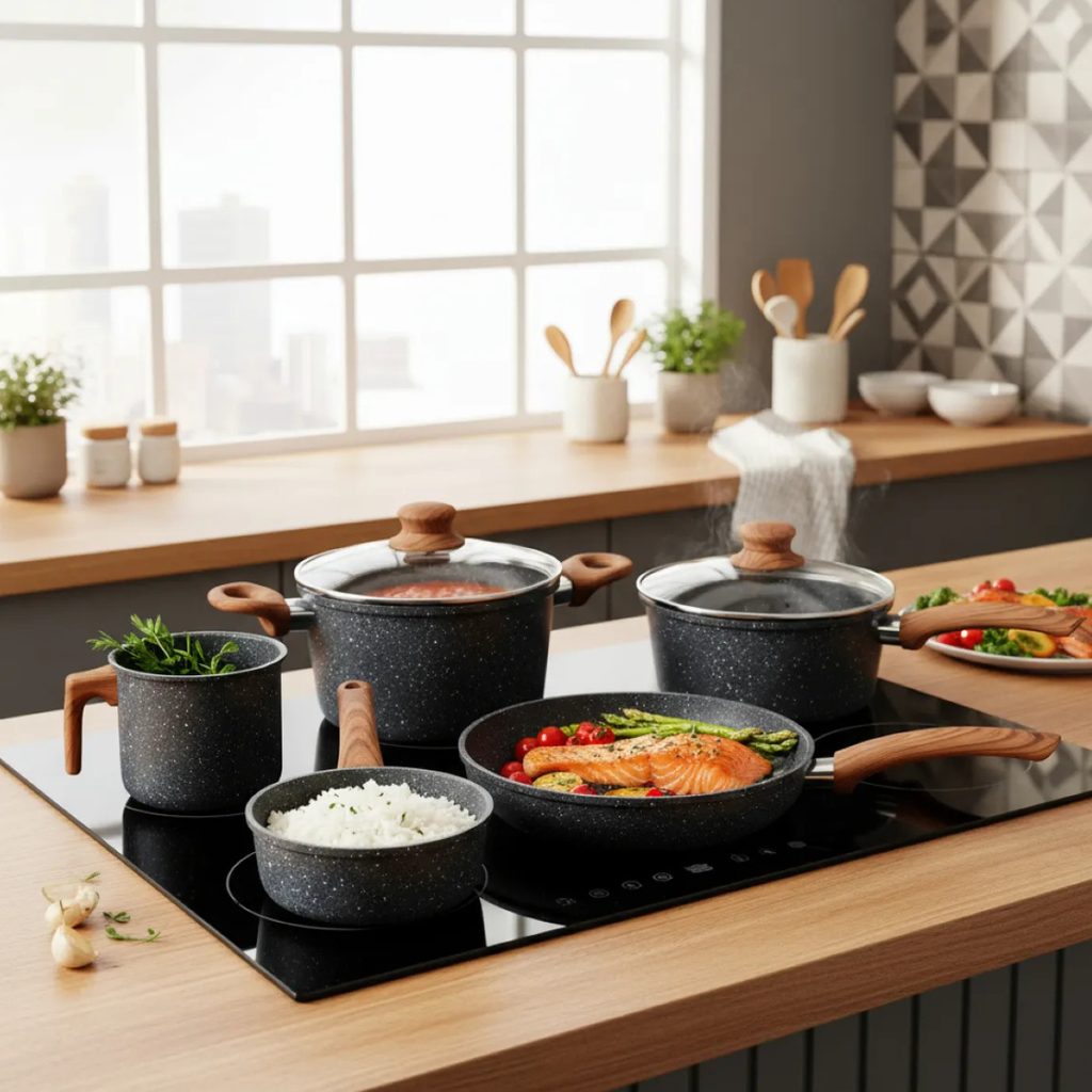 É o conjunto perfeito pra quem quer cozinhar com estilo, segurança e praticidade!